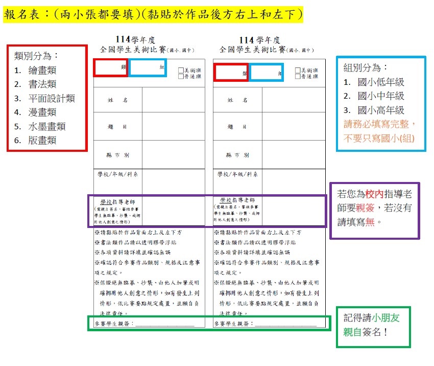 ※新北市114學年度學生美術比賽(校內評選結果公告)